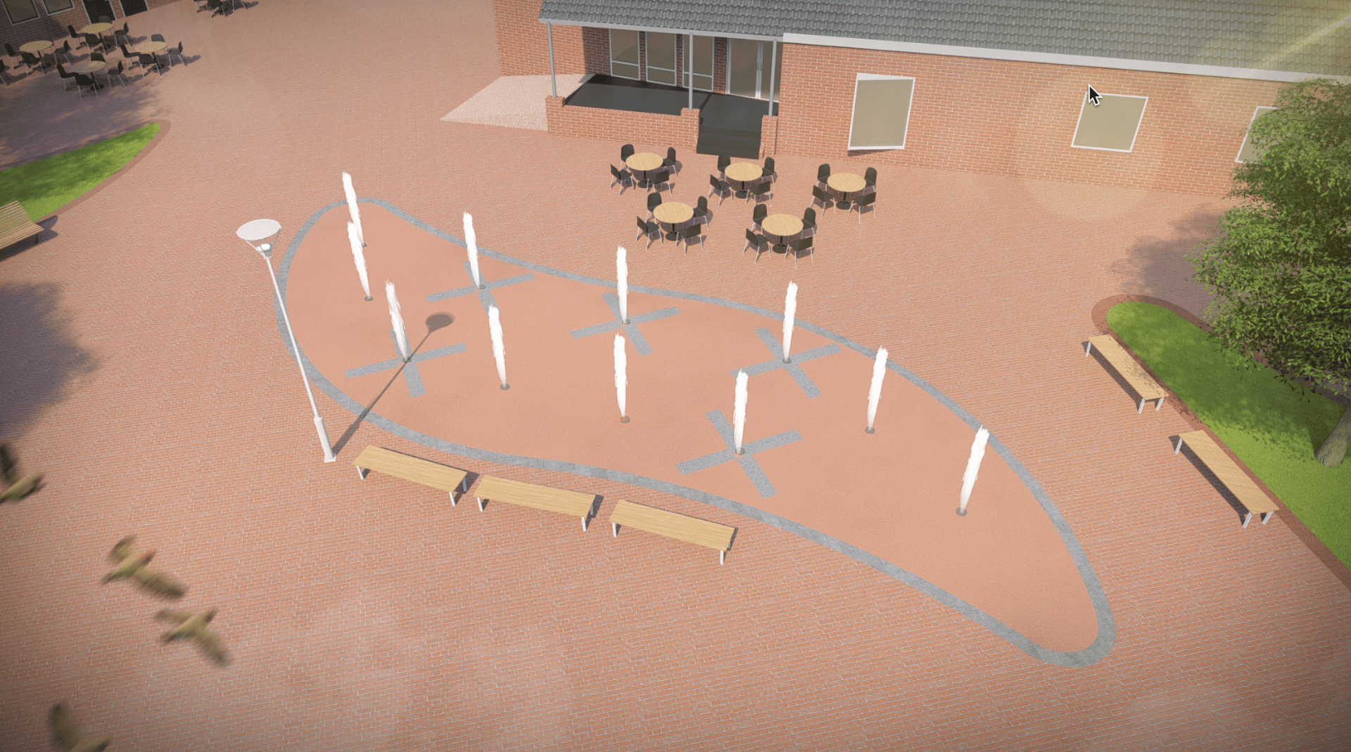 De vijf kruisen uit het dorpswapen komen terug in het ontwerp van de fontein. Een subtiel eerbetoon aan onze geschiedenis.